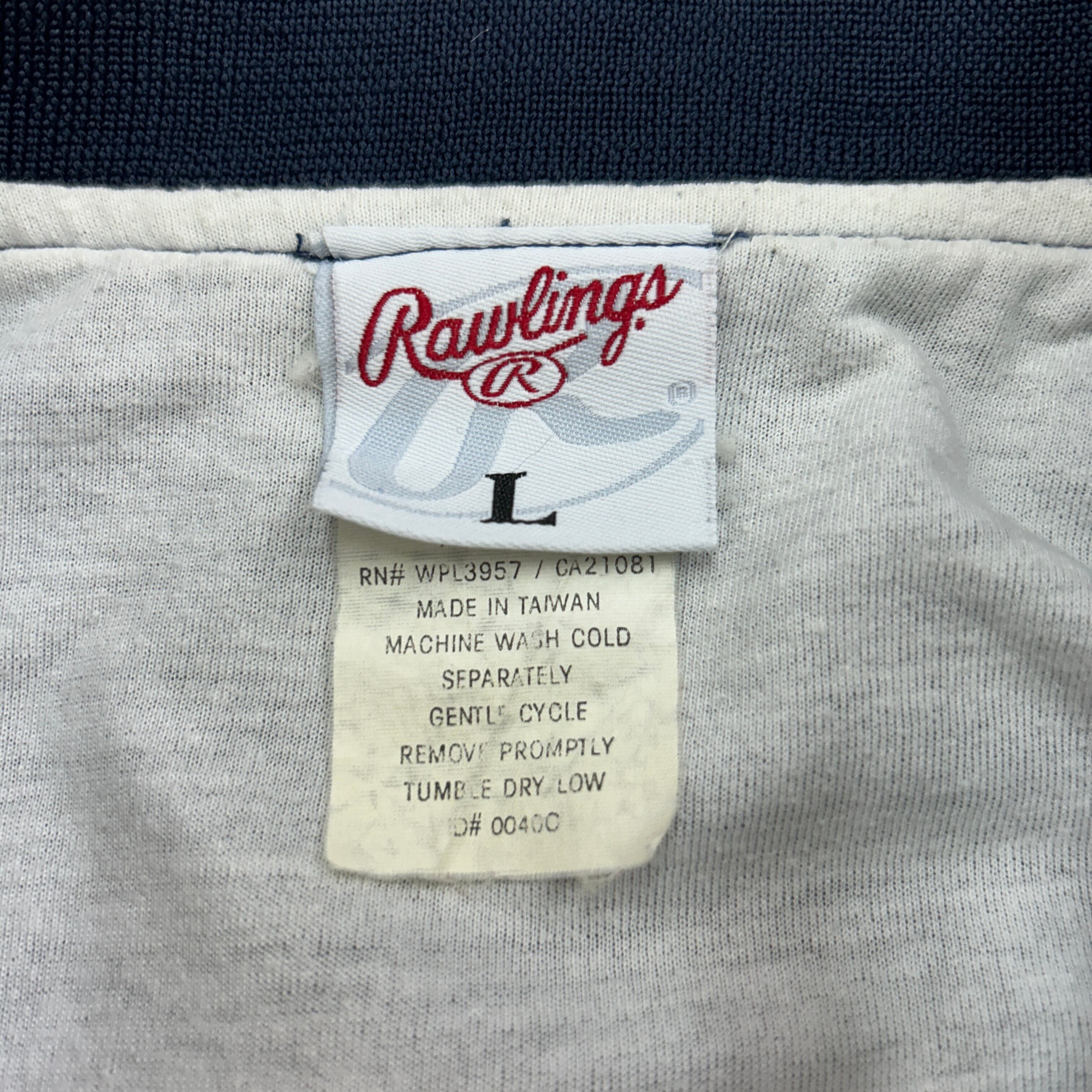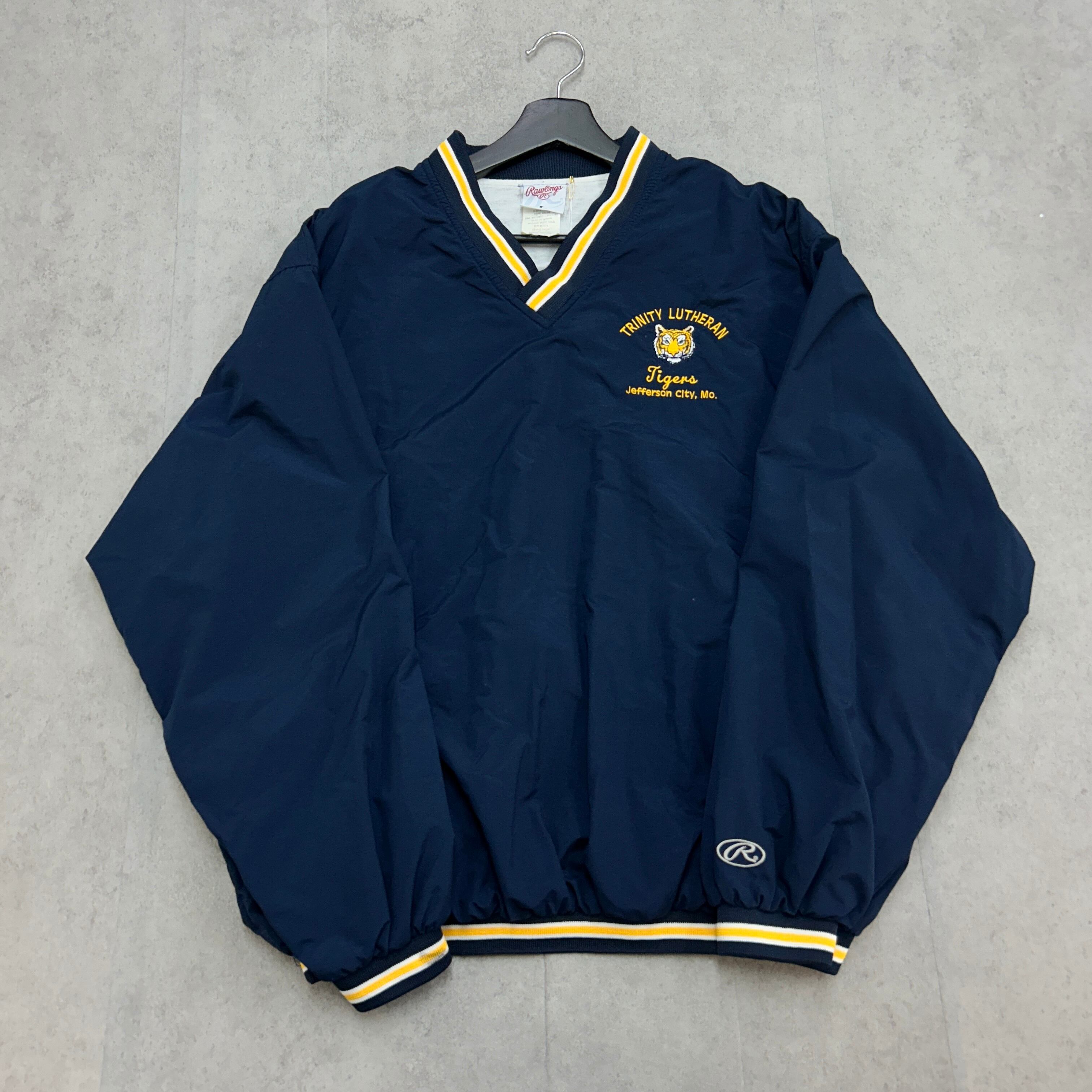 ■商品概要:トップス 長袖 プルオーバージャケット ピステ ウインドブレーカー Rawlings ローリングス Vネック リブライン ワンポイント アニマル 虎 タイガー サイドポケット 古着