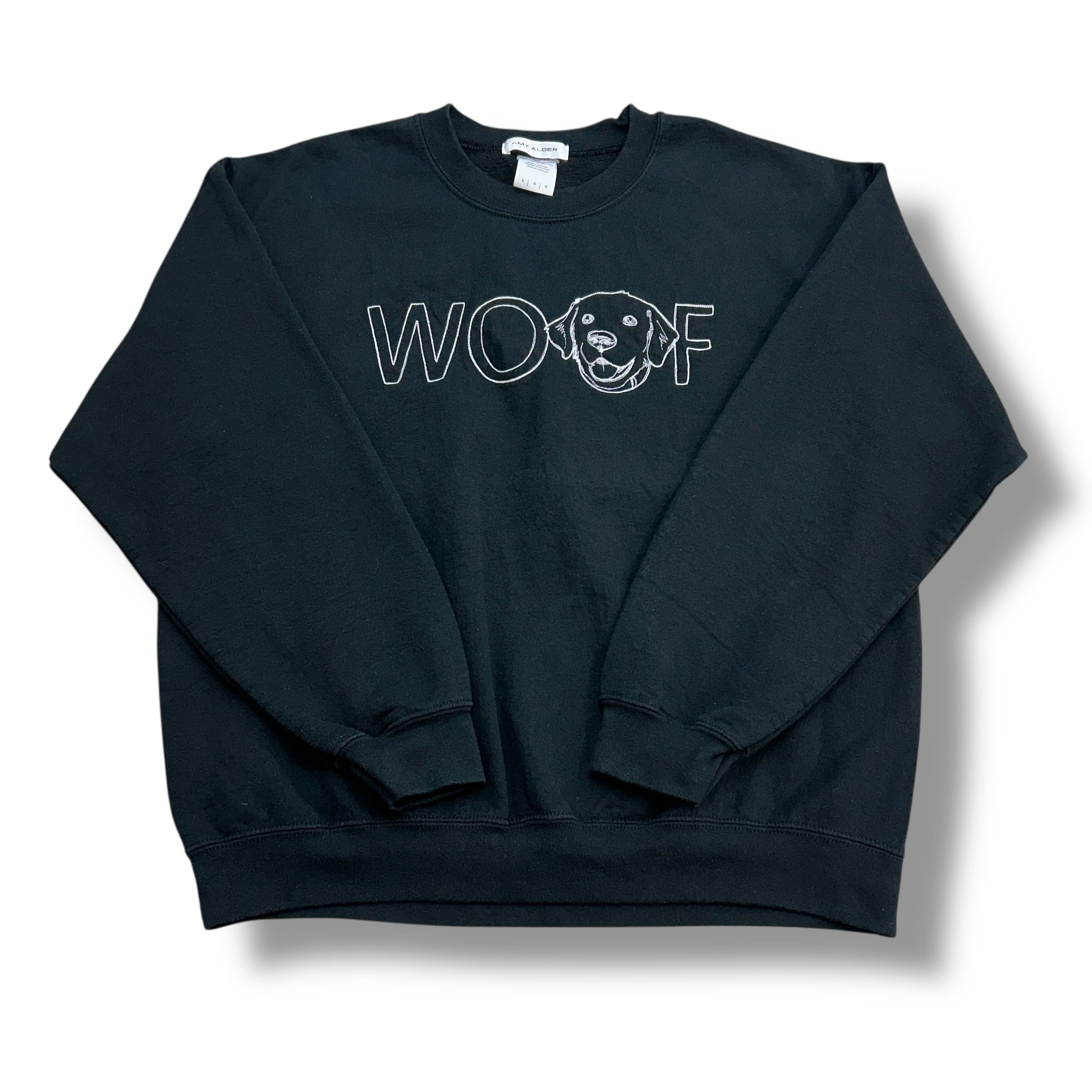 "WOOF" ワンちゃん 犬 刺繍デザイン スウェット ブラック 黒 Lサイズ