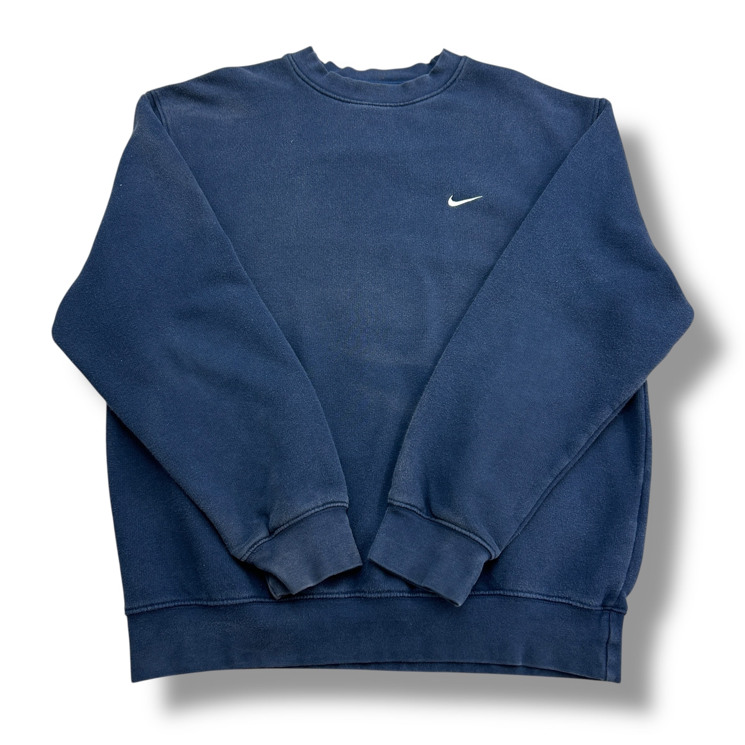【00s NIKE】ヨーロッパ製 ワンポイント刺繍スウッシュ ネイビースウェット M