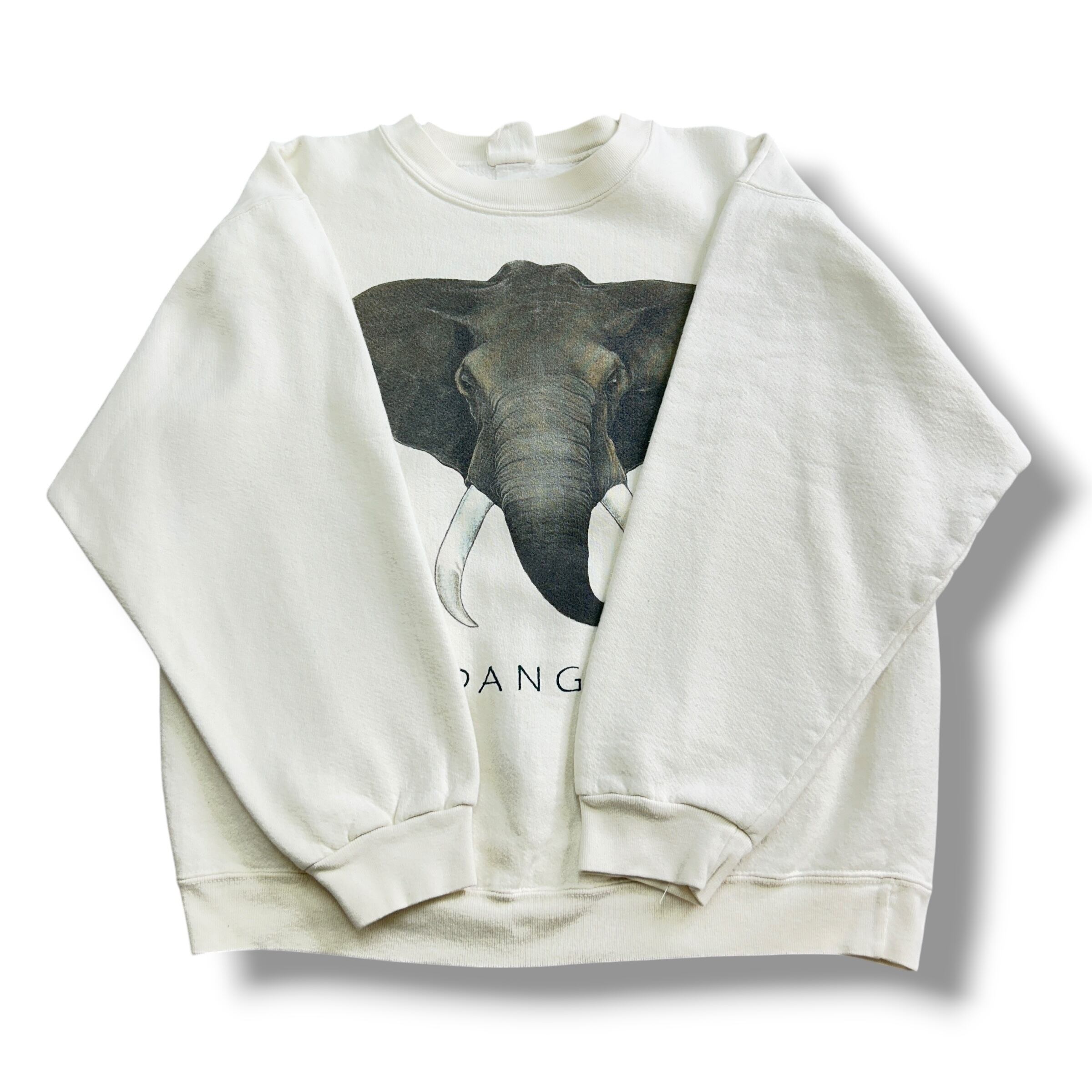 ONE PLANET アフリカゾウ ENDANGERED トップス 長袖 スウェット 古着 オフホワイト M